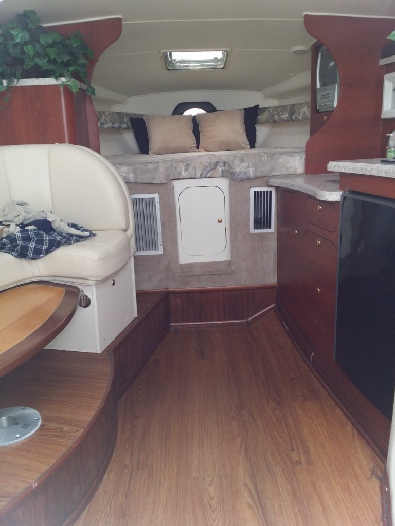 2001 Rinker 310 Fiesta Vee is a stunning cruiser that combines elegance with performance. Deep Vee hull design shape ensures stability and smooth navigation. Powered by twin MerCruiser 305 engines, each delivering 260 hp, it promises a great experience on the water with only 470 hours of operation. Equipped with windlass, A/C- heat, Generator, cockpit wet bar & carpet. Tv in the cabin & cockpit, GPS/Fish finder, electric toilet, hot water microwave, fridge and sleeps 4-6 people. Newer camper canvas- cockpit cover- cockpit seats were reupholstered and has Bravo 3 drives. The boat is in need of bellows replacements & power engine hatch piston- selling as is and priced accordingly