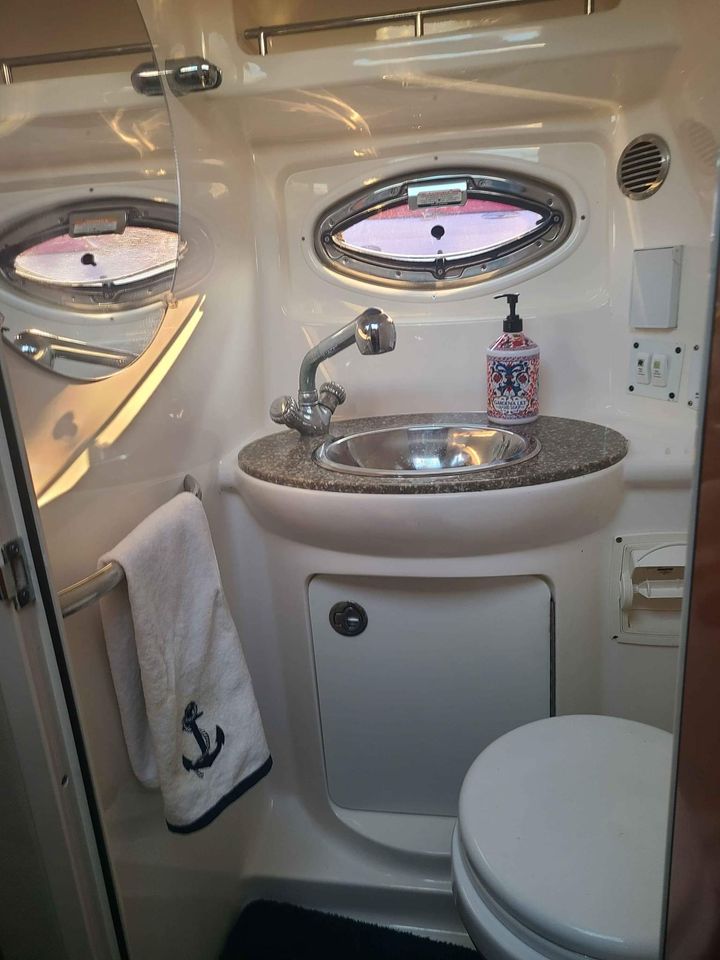 Powered with Volvo 5.7 GI with 400 engine hours, 2011 Venture Trailer, Cockpit Cover, Full canvas, Sea Dek cockpit & Platform and duo prop. Trim tabs, extended swim platform, cockpit sink, compass and dual batteries with charger. 12 volt helm plug, stereo, fridge and microwave.